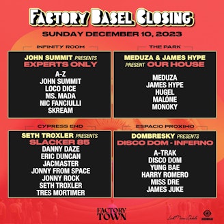 The perfect way to close BASEL week at Factory Town! 4 stages from 7 pm to 7 am!