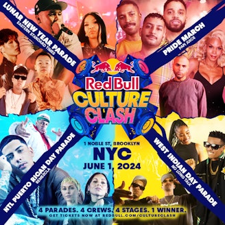 Red Bull Culture Clash features head-to-head performances from four crews honoring the city's most vibrant parades. Crews are given the reins to take over their own stage in each corner of the venue and face off in a four-round battle, bringing special gue...