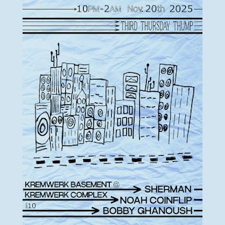 THUMP is an all-vinyl residency from Sherman, Bobby Ghanoush and Noah Coinflip, dedicated to the deeper side of underground electronic music. Centered around groove, emotion, and forward-thinking selections, THUMP explores the space where jazz chords, funk...